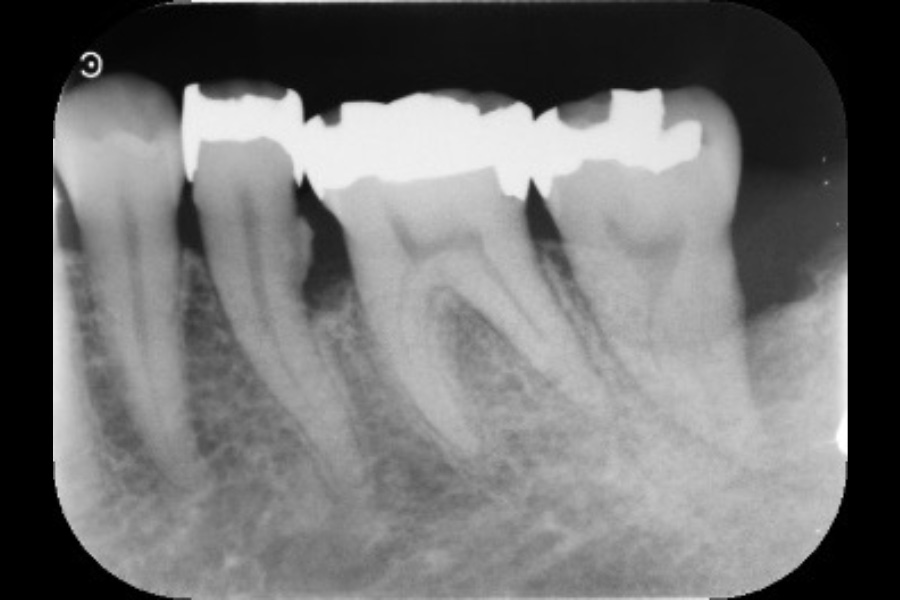 | 治療内容 | 左上4遠心と左上6近心に垂直性骨吸収が認められたためエムドゲインと骨補填材を用いて歯周組織再生療法を行った |