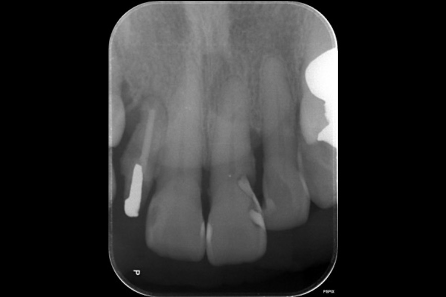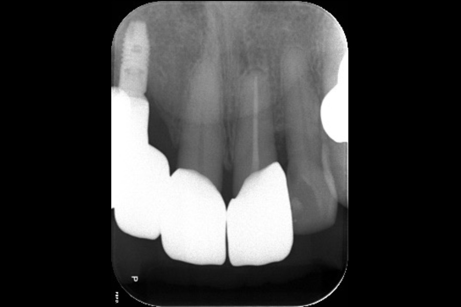前歯なので、残存歯を利用して即日に仮歯を装着。